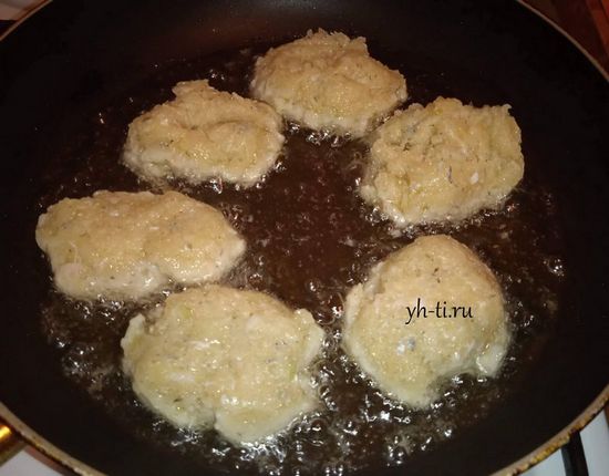 Формируем котлеты, обваливаем их в муке или сухарях и обжариваем с двух сторон.