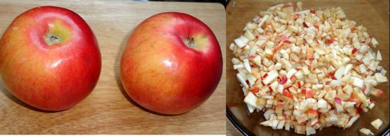 Теперь настало время яблок. Достаточно будет 2-х небольших штучек. Да, и желательно использовать кислые сорта. Вместо них я иногда добавляю свежий огурец или пекинскую капусту. А можно также добавлять отварной рис.