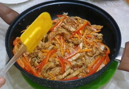 Фунчоза с мясом, взято с https://www.youtube.com/watch?v=rvULmR8_NrI