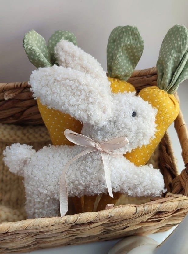 Плюш (или мех). Если вы хотите, чтобы ваш заяц был особенно мягким и пушистым, выбирайте плюшевую ткань или искусственный мех. Такой материал придаст игрушке дополнительный объём и уютность.