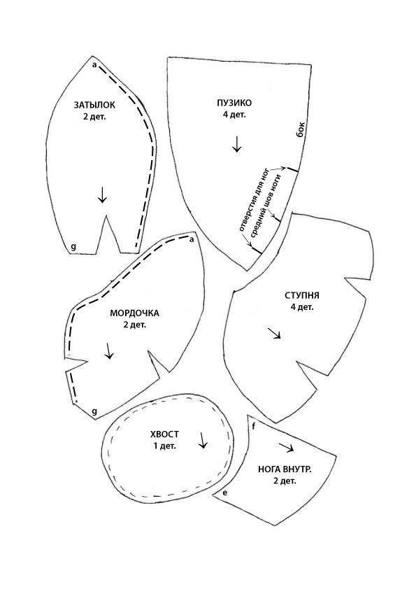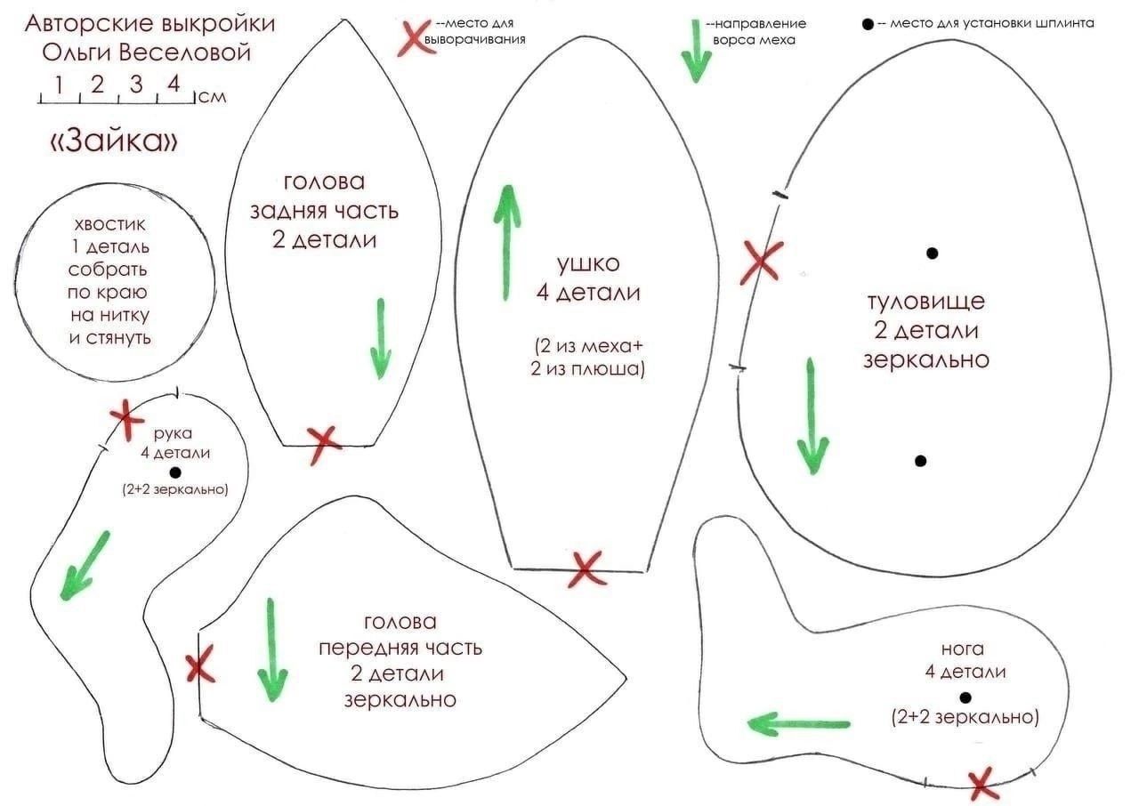 5. Добавьте метки. Обозначьте места соединения деталей (например, где голова крепится к телу), а также направление ворса ткани, если используете меховые материалы.