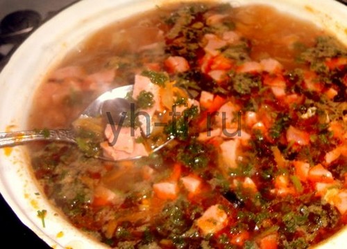 Настенька, собираю для солянки все остатки — варёная колбаса, сосиски, копчёности. А бульон предпочитаю варить из большого куска мяса. Но само мясо для солянки не использую, пускаю на начинку для блинов или пирожков.