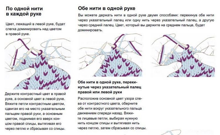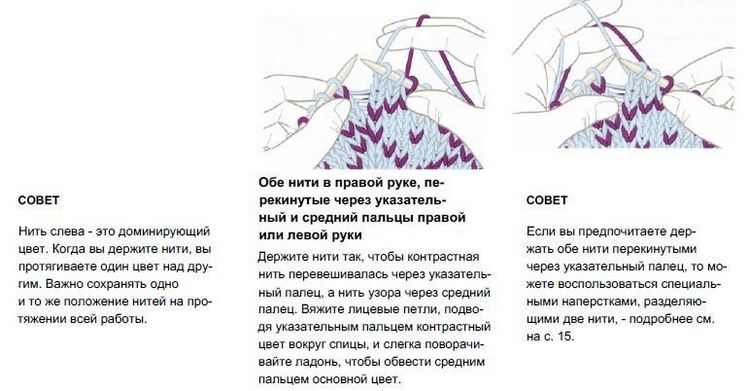 Как держать нити при вязании жаккарда