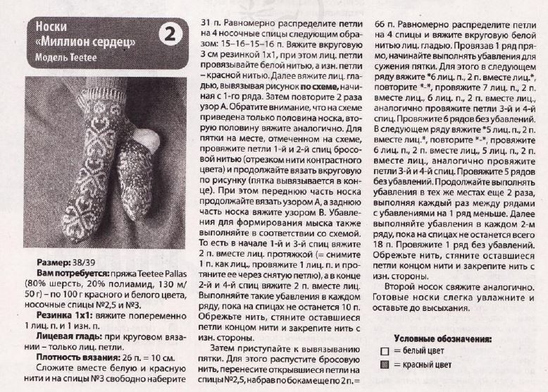 носки с сердечками: схема