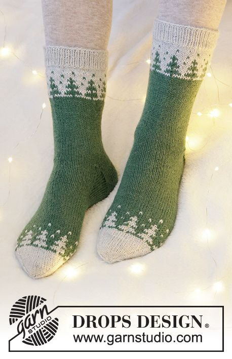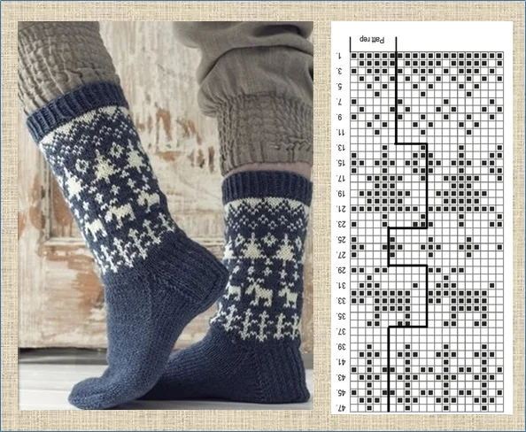 Носки с жаккардом «Елки и олени»: схема