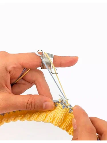 Есть специальные кольца и наперстки, которые помогают распределять нити. Но не стоит рассчитывать, что работа с ними сразу закипит. Потребуется время и тренировка, прежде чем такие приспособления станут настоящими помощниками. Вполне может быть и такое, что вязать без них будет все-таки удобнее. Заказать кольца и наперстки можно на Wildberries и Ozon.