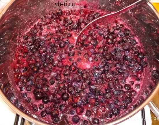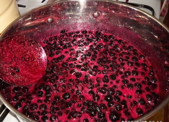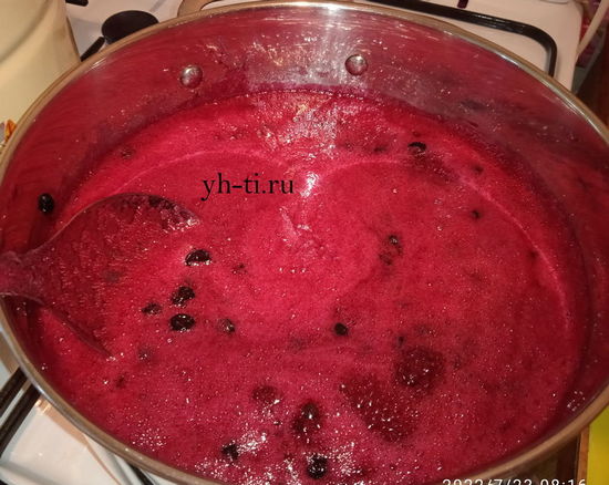 Спустя ночь ирга со смородиной дали сок. Теперь можно ставить на огонь. Варим, постоянно помешивая. После закипания варим 5 минут и выключаем огонь. Оставляем остывать.