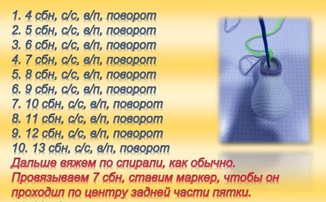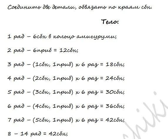 Вязание всегда начинается с круга амигуруми и далее вяжется по спирали.