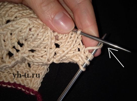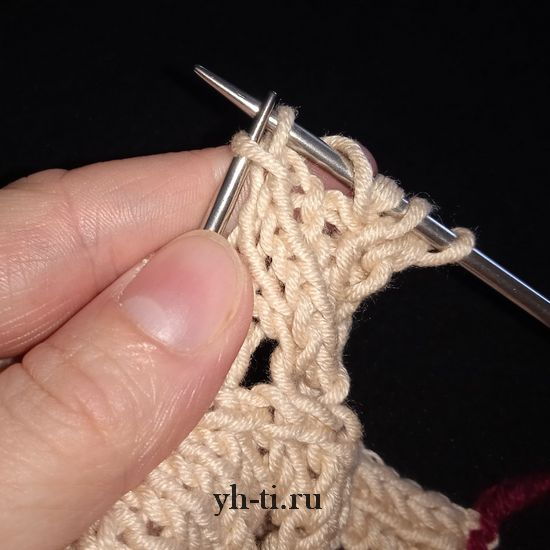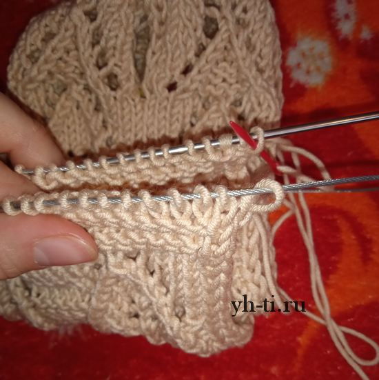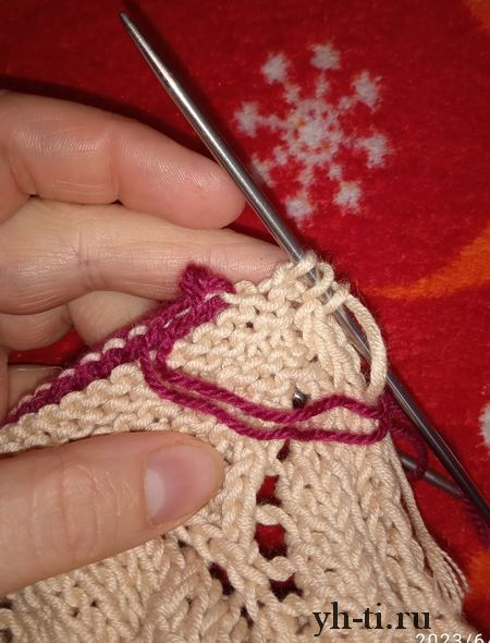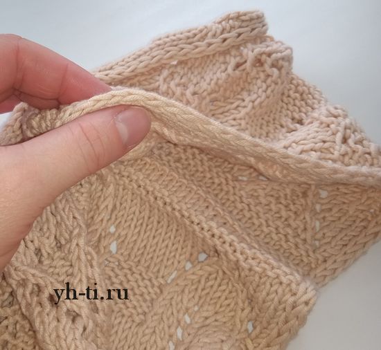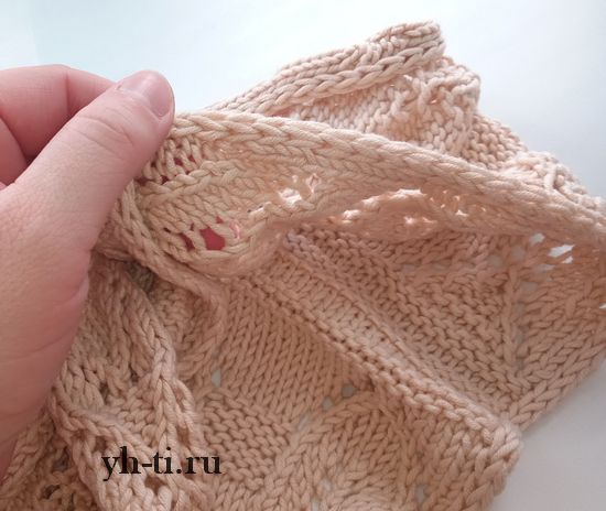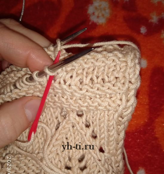 Когда в высоту будет привязано 2 раппорта, разделяем петли пополам. К каждой половинке с внутреннего края добавляем по 1 петли для красивого края.