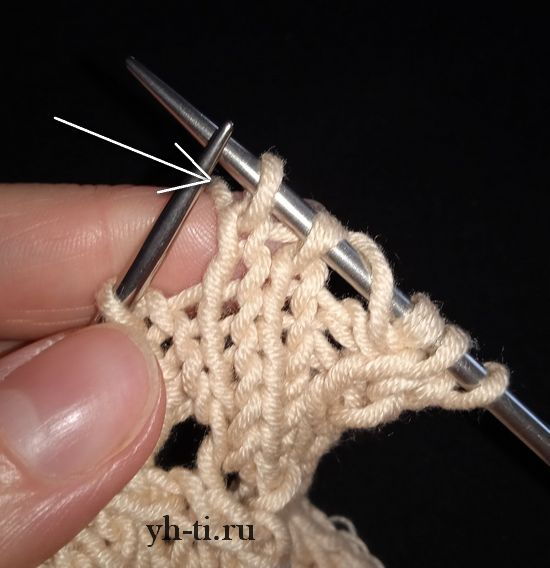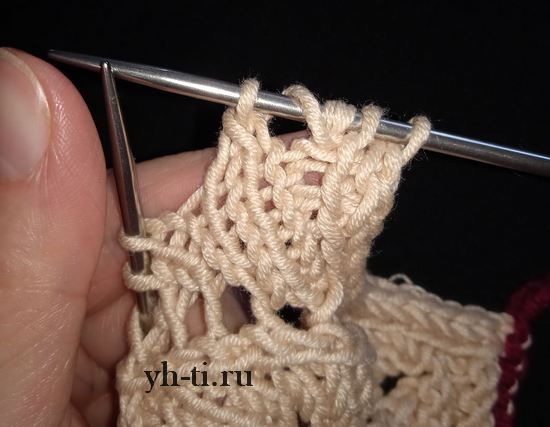 4 ряд. В изнаночном ряду вяжем все петли по узору.
