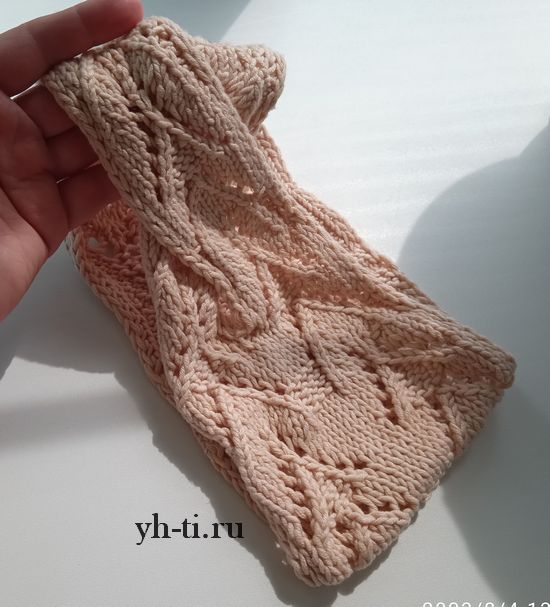 Лето хоть и теплое время года, но бывает и так, что ветерок северный дует или вовсе температура не поднимается выше 18 градусов, да еще и небо хмурится весь день. В такие моменты бывает неуютно, даже холодно. Хочется надеть что-то потеплее, но шерстяные вещи как-то не всегда уместны, лето как-никак 🙂 Вот как раз для таких прохладных деньков предлагаю связать повязку из хлопка с ажурным узором «Деревья». В ней и ушки не продует, и волосы ветер не растреплет, и смотрится она вполне гармонично с любой одеждой.