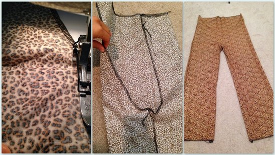 Чтобы прошить шаговые швы, одну брючину продеваем в другую