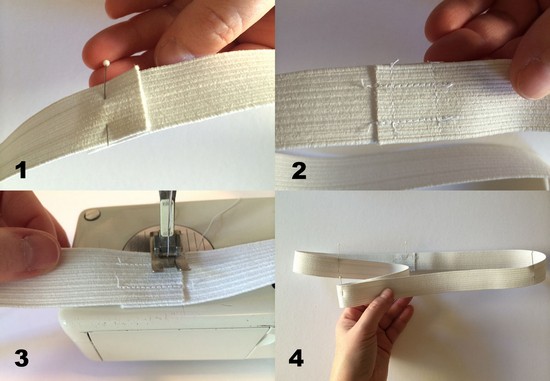 Сшиваем резинку и расставляем 4 булавки через равные промежутки