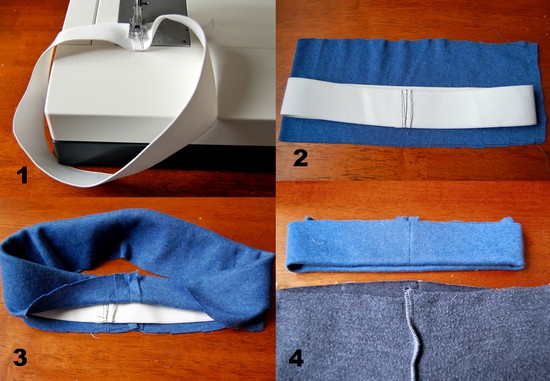 Сшиваем резинку, оборачиваем в ткань и прошиваем