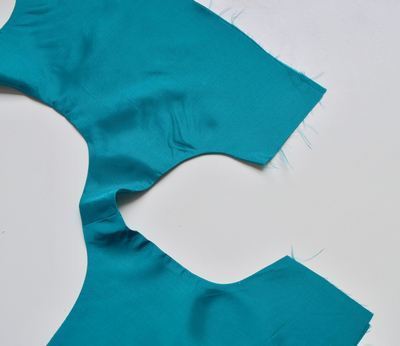 Детали переда и спинки сложите лицевыми сторонами и стачайте плечевые швы. Это же самое сделайте с деталями подкладки.