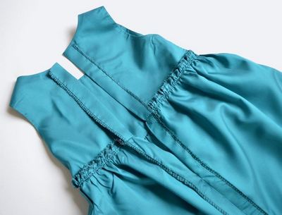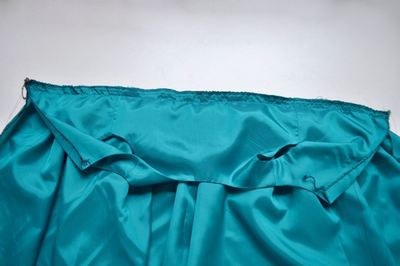Проложите по верхнему срезу юбки две сметочные строчки. Присборьте юбку так, чтобы ширина соответствовала ширине лифа.