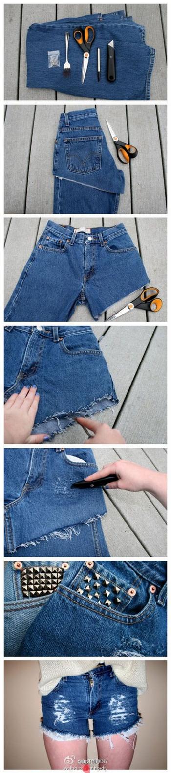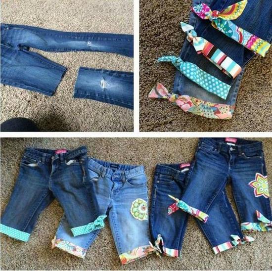 Проще всего обрезать старые джинсы и подвернуть срезы, даже прошивать не придется. Об этом методе знают все, поэтому описывать его подробно и прилагать фото нет смысла. А вот другими интересными идеями на эту тему с удовольствием поделюсь, смотрите фото ниже.