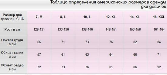 Размеры выкройки указаны по возрастам — от 2-х до 10-ти лет. Ниже можно посмотреть значения для американских размеров. Если сомневаетесь в выборе правильного размера, могу посоветовать следующее: распечатайте листы выкройки, склейте их, возьмите платье, которое на данный момент впору вашей малышке и прикиньте к чертежу. Все сразу же станет ясно.