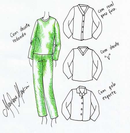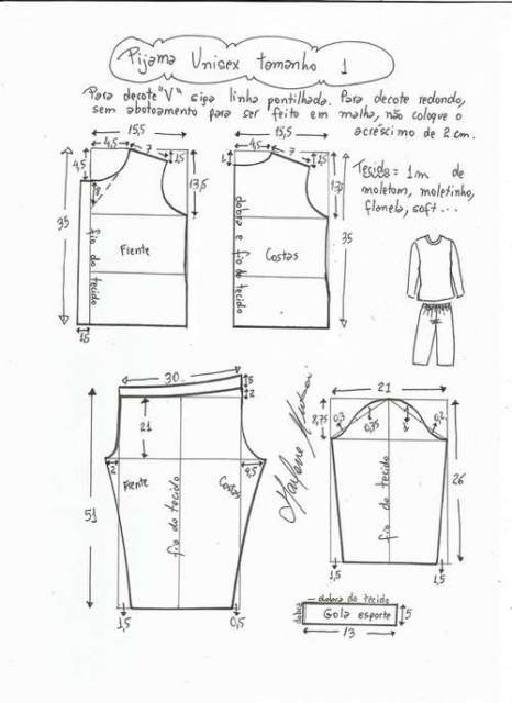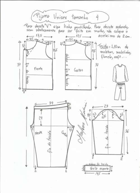 Это выкройки-схемы пижамы от Марлен Мукай. Таблица португальских размеров есть чуть ниже.