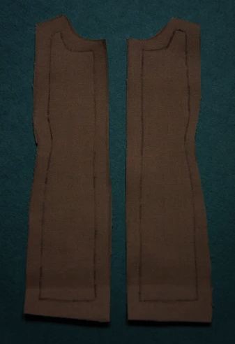 Проложить строчку по боковым швам и на рукавах на основной детали. Повторите на подкладке.