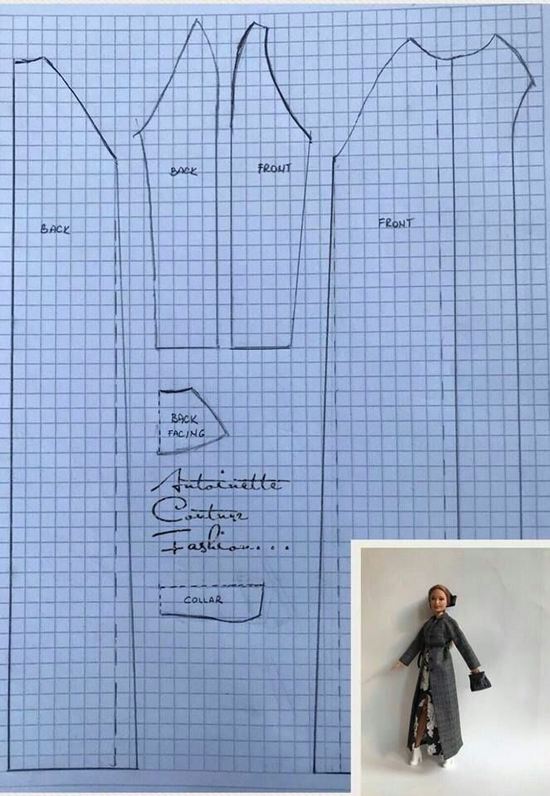 Вот такое замечательное пальто можно сшить для куколки, имея под рукой выкройку и подходящий материал. Традиционный рост Барби — 29 см.