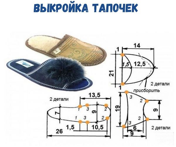 Выкройки домашних тапочек для взрослых и детей