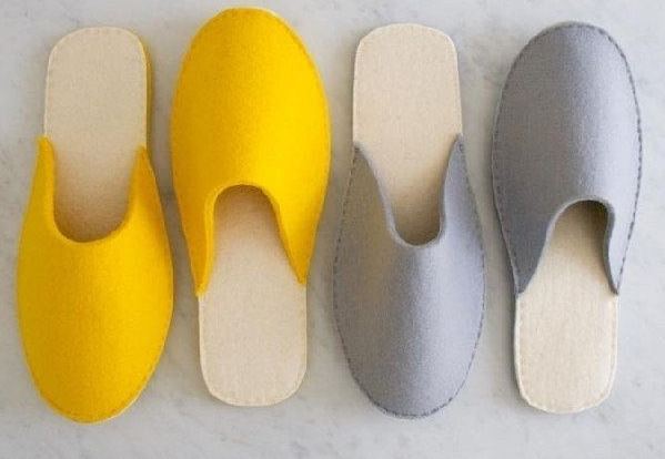 Эти тапочки из фетра хорошо стираются в машинке. Поэтому после отъезда гостей их можно закинуть в стирку, просушить и положить до нового визита близких людей. И вам, и гостям будет приятна такая забота.