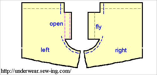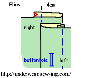 Соедините детали мужских трусов, следуя расположенным ниже схемам. В завершении сделайте петлю и присоедините пуговицу.