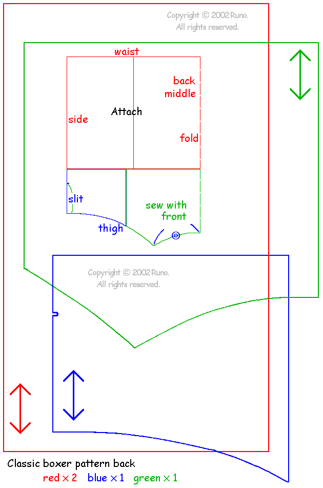 Выкройка трусов-шортов также подойдет и для женщин — зеленая линия на выкройке с пометкой lady’s.
