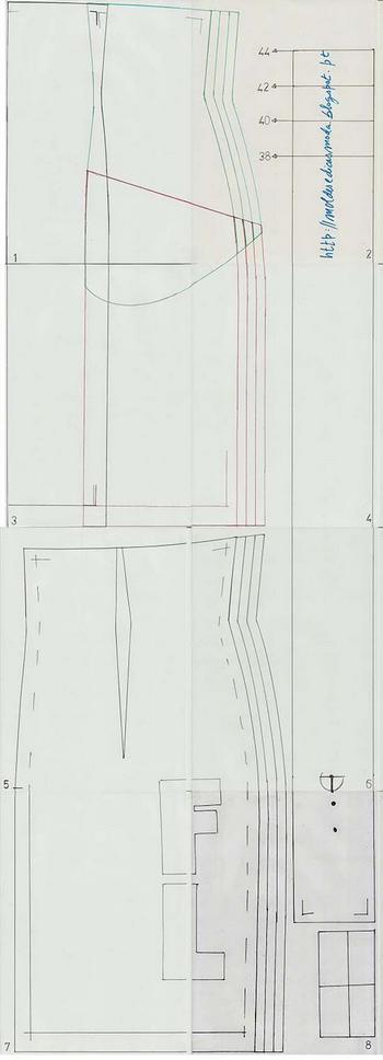 Итак, поехали! Первоначально даю выкройки юбки-карандаш с высоким уровнем талии. Скачайте архив, распечатайте листы в натуральную величину (масштаб 100%) и вырежьте нужный размер — 38, 40, 42 или 44. Таблица размеров ниже.