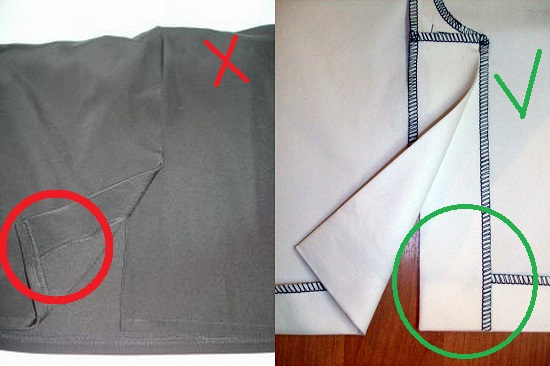 Шаг 5. Обработайте низ изделия. Обратите внимание, что если вы делали шлицу, то подгиб низа не должен быть отвернут на нее. Пример привожу ниже.