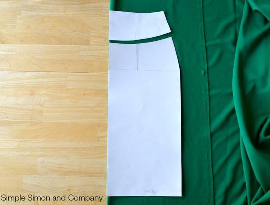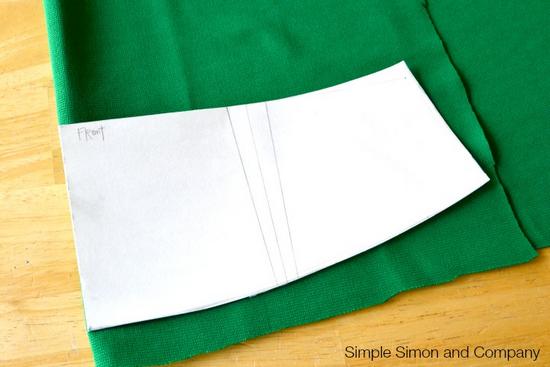 Шаг 1. Переносим детали на ткань, сложенную вдвое. Детали пояса обводим, как показано на фото и вырезаем.