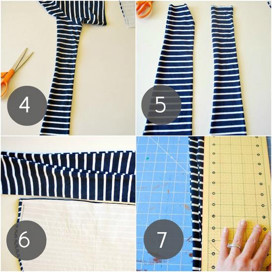Шаг 1. Вырезаем детали юбки из кофты. Рукава оставляем для пояса.