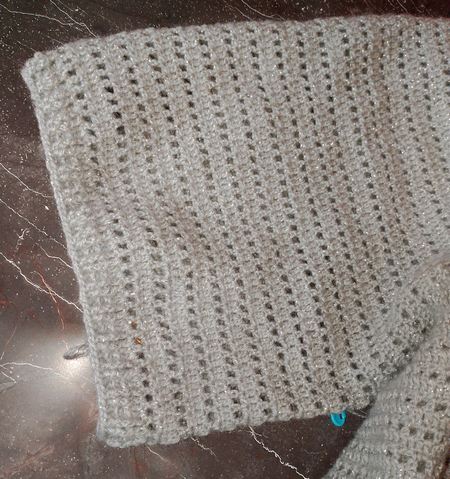 Так как подрезы у меня получились достаточно широкими, рукав, соответственно, тоже получился не маленьким. Поняла я это, когда уже отвязалась несколько см рукава. И мне захотелось его сделать поменьше. Для этого на подрезах я пропускала по 2 петли и только в третью вязала столбик с накидом, между столбиками также привязывала 1 воздушную петлю. в итоге у меня получилось 20 петель (выходит, что сократила 6 петель) . Также нужно было провязывать петли на росте, их получилось 14 (7 ст. с накидом и 7 воздушных петель).