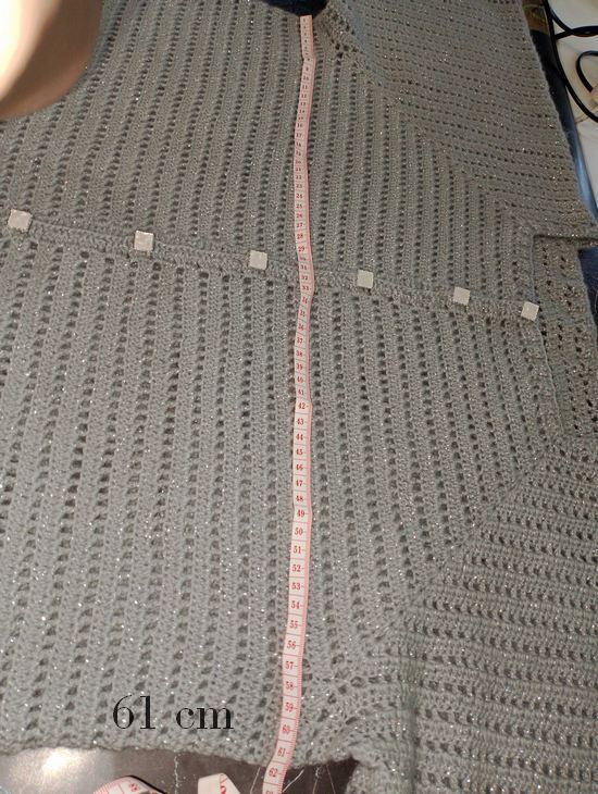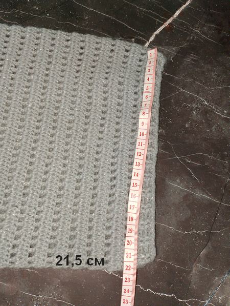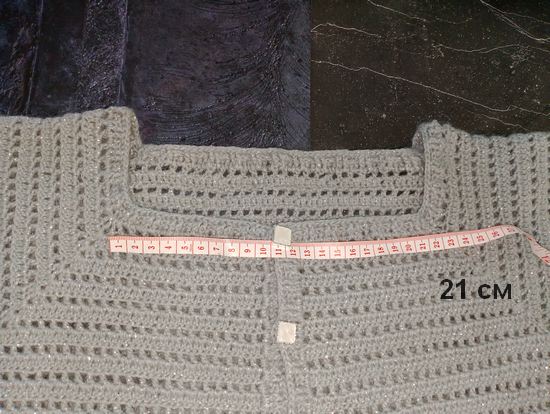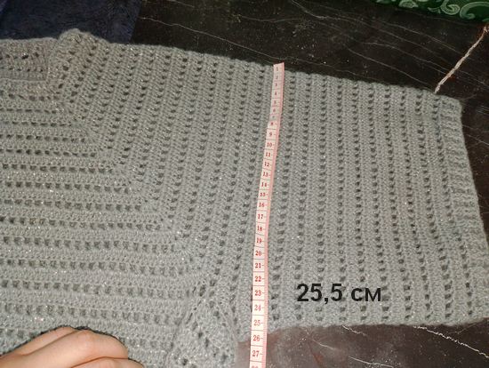 Длину реглана тоже примеряла по ходу вязания. Когда посчитала достаточным, закончила реглан. Его длина у меня вышла 21 см.